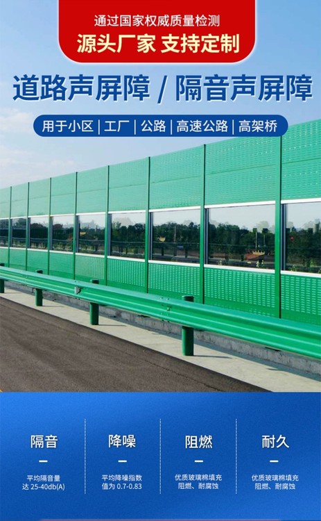 主要由鋼結構立柱和吸隔聲屏板組成,立柱通過螺栓或焊接固定于道路或軌道旁,屏板根據材質分為: